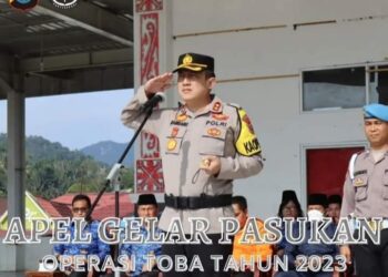 FOTO: Gubernur Sumatera Utara (Sumut) Edy Rahmayadi memimpin Apel Gelar Pasukan Operasi "Ketupat Toba - 2023" dalam rangka pengamanan Idulfitri...