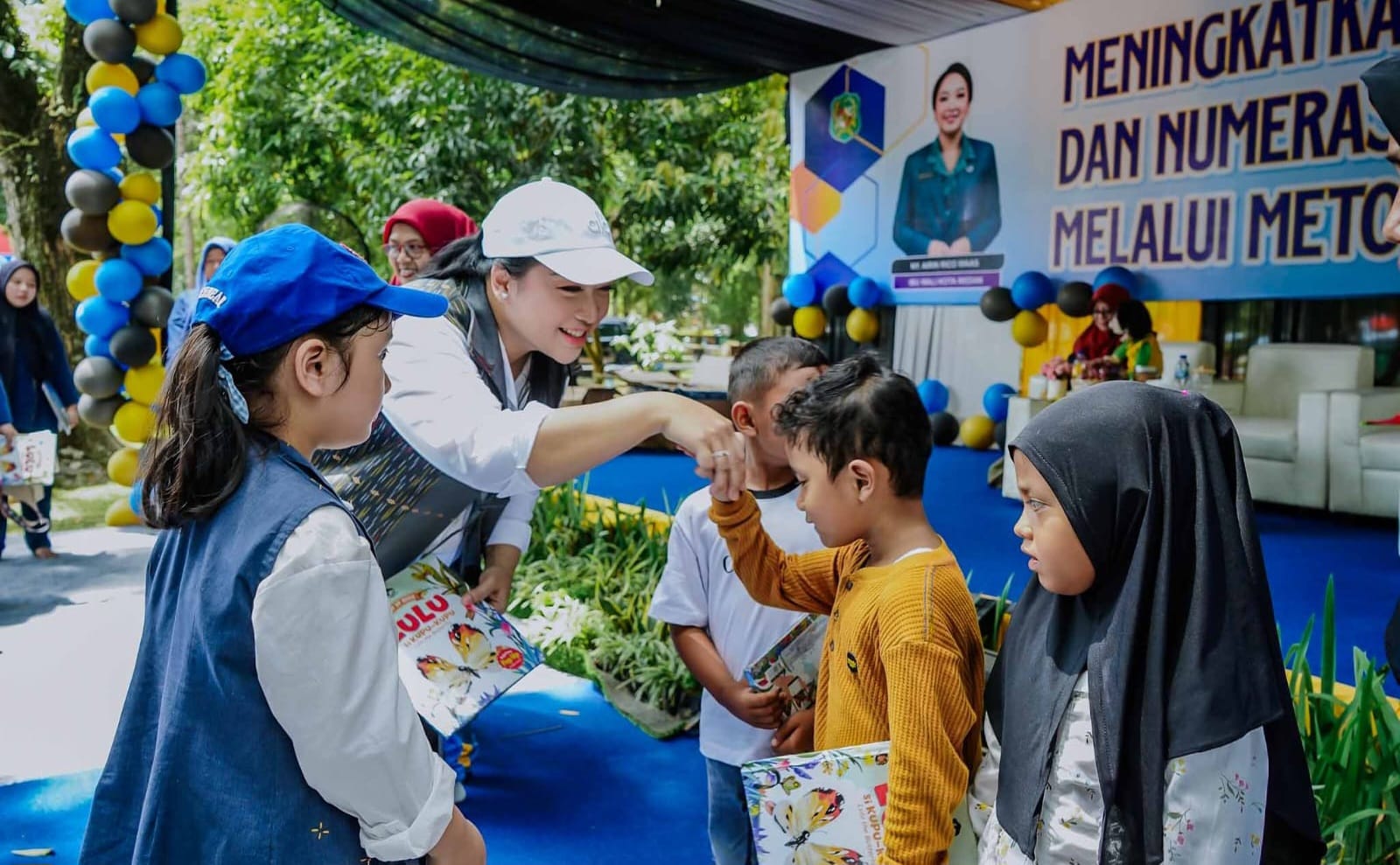 “Teruslah rajin membaca, rajin belajar, dan rajin mendengarkan cerita. Dari cerita, anak-anak bisa bermimpi, belajar, dan meraih cita-cita,” ungkapnya.