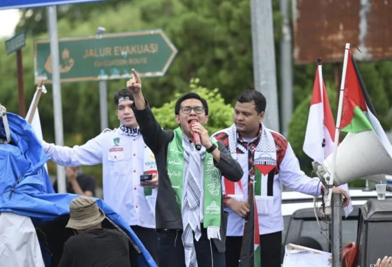 Foto: Ketua DPRK Banda Aceh pada aksi bela Palestina di Bundaran Sinpang Lima (Dok Humas DPRK Banda Aceh)