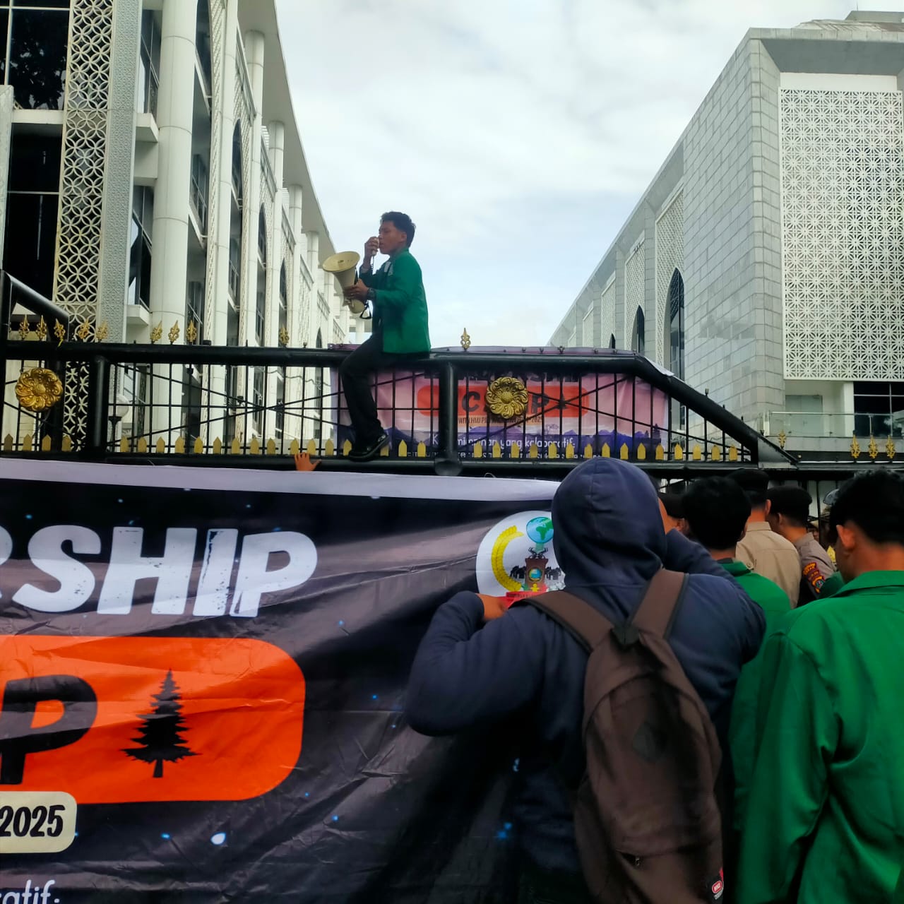 Aksi yang dipimpin Khairul Fahmi dan korlap Rafi Lamnur Siregar tersebut mendapat pengawalan ketat aparat kepolisian dan satpol PP. Beberapa orator memanjat pintu pagar gedung DPRD menyampaikan orasi.