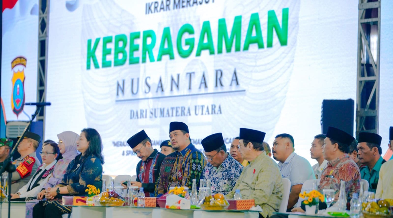 Deli Serdang (Portibi DNP) : Bersama Wakil Presiden (Wapres) RI Ma’ruf Amin, Wali Kota Medan Muhammad Bobby Afif Nasution menghadiri Ikrar Merajut Keberagaman Nusantara di GOR Serba Guna Pemprov Sumut, Jalan Williem Iskandar, Kamis (19/10/2023). Kegiatan ini diinisiasi oleh organisasi Muslim terbesar di Sumut yakni Jam’iyah Batak Muslim Indonesia (JBMI).
