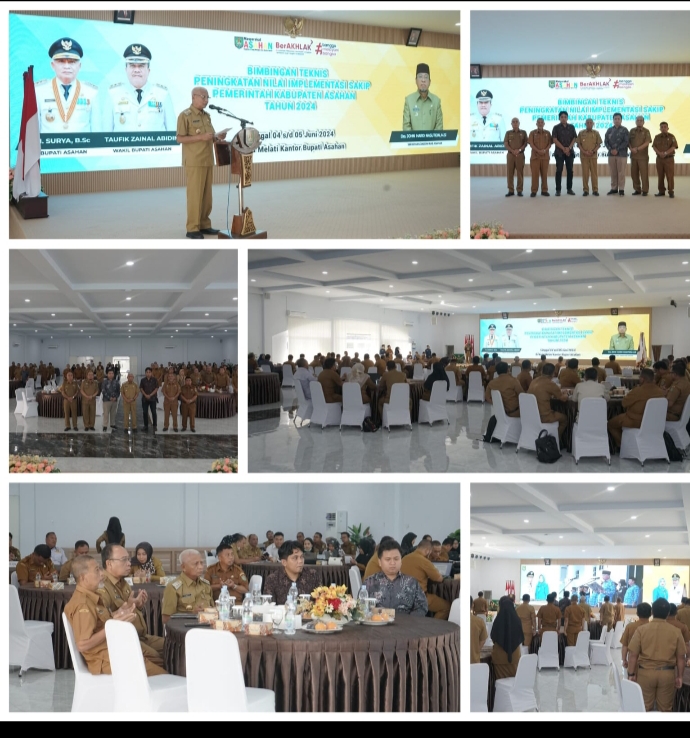 ASAHAN (Portibi DNP): Bupati Asahan H. Surya BSc membuka bimbingan teknis peningkatan nilai implementasi Sakip Pemerintah Kabupaten Asahan yang bertempat di Aula melati Kantor Bupati Asahan, Selasa (04/06/2024).