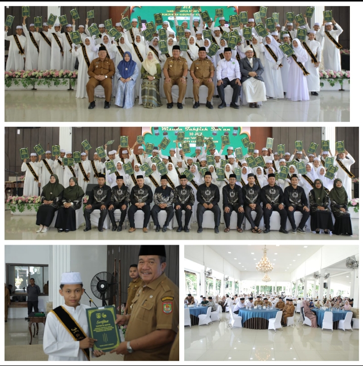 Asahan (Portibi DNP): Bupati Asahan, Taufik Zainal Abidin Siregar, S.Sos., M.Si mewisuda 48 orang santri Lembaga Tahfizh Al-Qur’an Pemerintah Kabupaten (Pemkab) Asahan yang bertempat di Pendopo Rumah Dinas Bupati Asahan, Senin (23/06/2025).