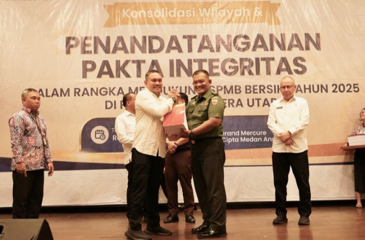 PAKPAK BHARAT(Portibi DNP): Bupati Pakpak Bharat Franc Bernhard Tumanggor menandatangani pakta integritas guna mewujudkan Sistim Penerimaan Murid Baru (SPMB) tahun 2025 berjalan tertib, jujur, transparan, dan lebih manusiawi. Bersama seluruh kepala daerah se-Sumatera Utara (Sumut), Franc menandatangani pakta integritas ini dihadapan Kepala Balai Penjamin Mutu Pendidikan (BPMP) Sumatera Utara, Tajuddin Idris, di Hotel Grand Mercure Maha Cipta Medan Angkasa, Medan,Rabu (14/05/2025).