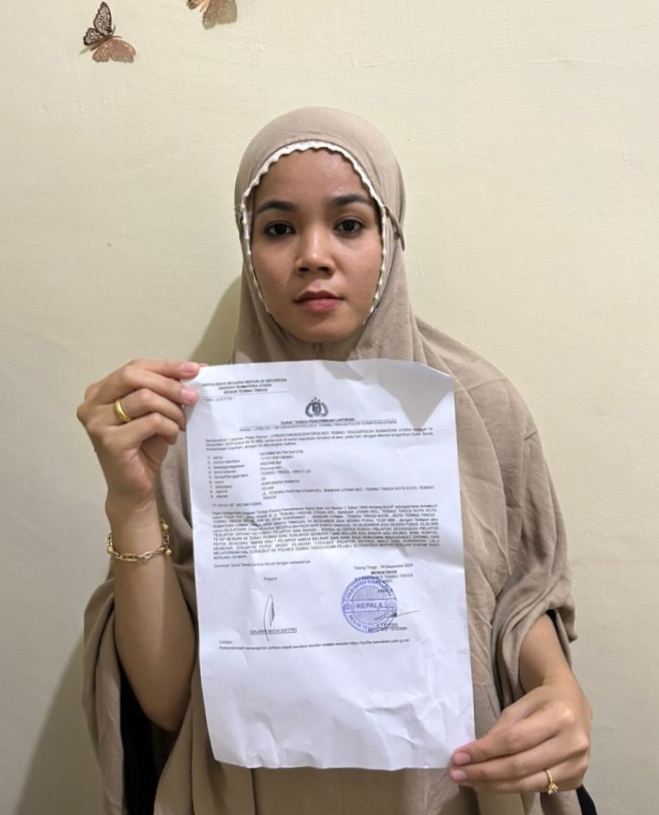 Bukti laporan Saummi terhadap Bripka DA tertuang dalam STPL nomor: LP/B/521/XII/2024/SPKT/Polres Tebingtinggi/Polda Sumatera Utara.