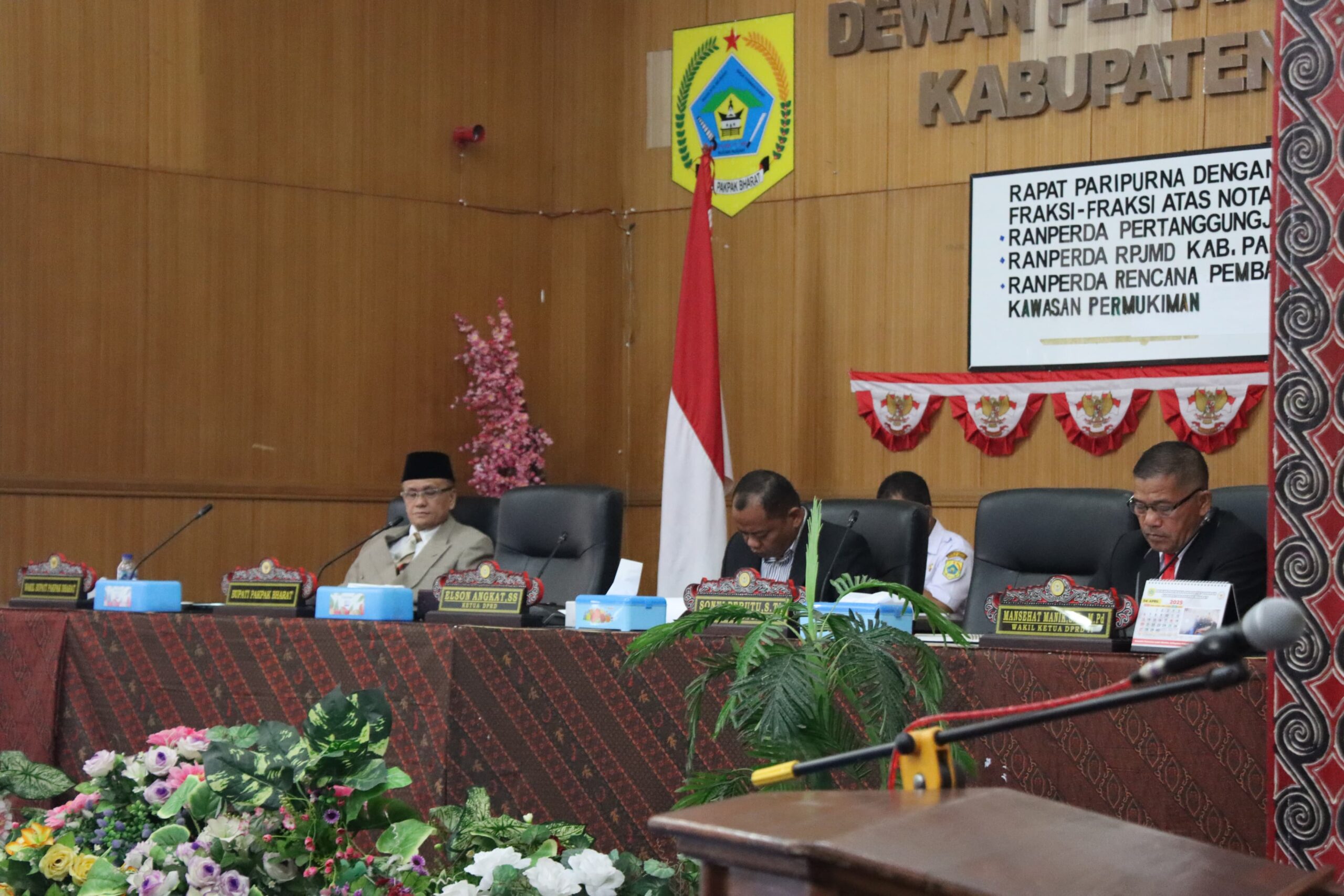 Diketahui Bupati Pakpak Bharat telah menyampaikan Pidato Nota Pengantar atas tiga Rancangan Peraturan Daerah pada sidang terdahulu. Adapun tiga Ranperda dimaksud yakni, Ranperda Pertanggungjawaban pelkasanaan APBD TA 2024, Ranperda RPJMD PAkpak Bharat tahun 2025-2029, serta Ranperda Rencana Pembangunan dan Pengembangan Perumahan dan Kawasan Permukiman.ST