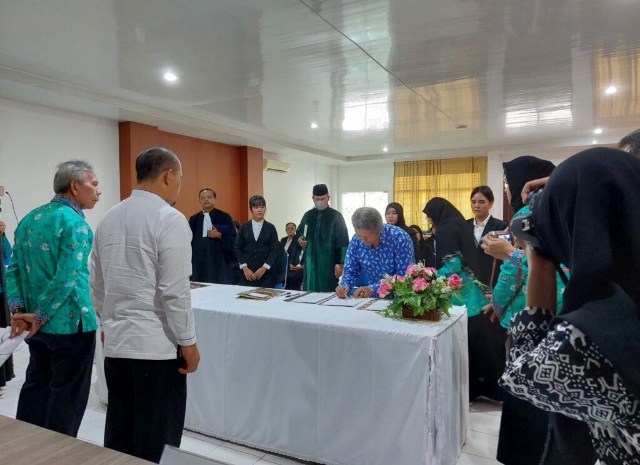 MEDAN(Portibi DNP): Fakultas Teknik (FT) Universitas Negeri Medan (UNIMED) menggelar acara pengukuhan dan pengambilan sumpah bagi 39 wisudawan Profesi Gizi. Pengucapan sumpah/janji profesi ini merupakan salah satu syarat untuk memperoleh Surat Tanda Registrasi (STR) dan pengakuan sebagai anggota profesi gizi. STR sebagai salah satu syarat untuk melamar kerja. dilaksanakan di Lt. 2 Aula FT Unimed, pada 15 April 2023.