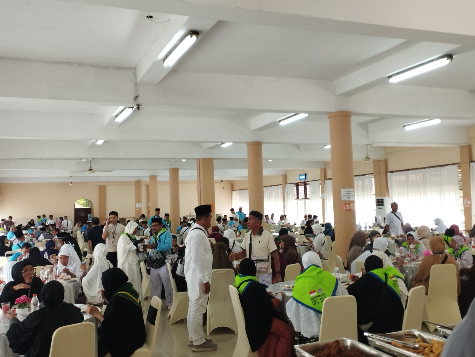 Proses penerimaan jemaah terlihat berjalan tertib dan lancar. Sejumlah petugas sudah bersiaga di berbagai titik pelayanan, mulai dari pemeriksaan dokumen, kesehatan, hingga penyediaan konsumsi.