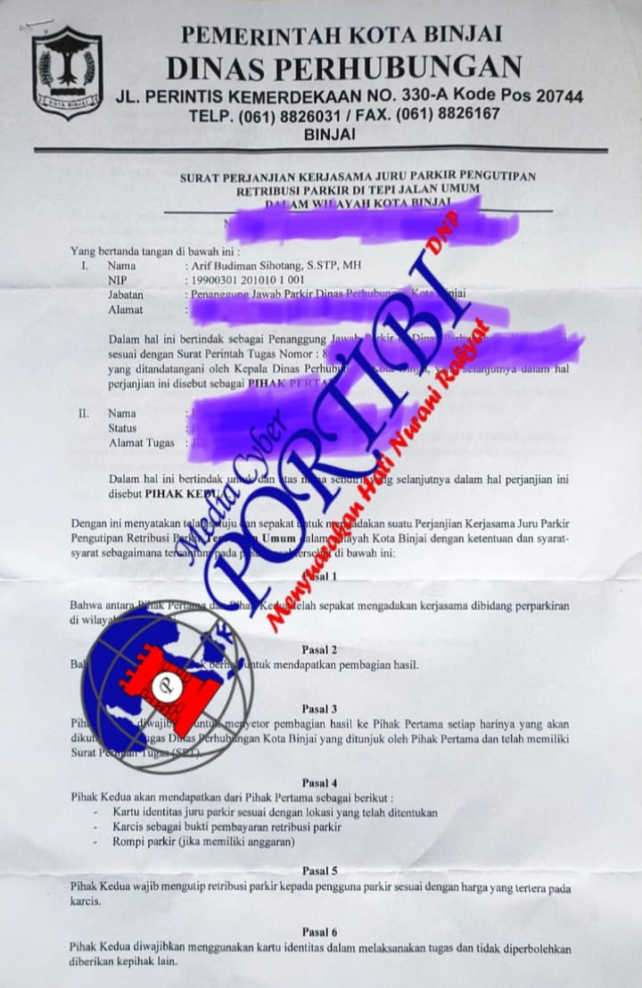 Kemudian, BA selaku pihak pertama akan memberikan iuaran retribusi kepada Dishub Kota Binjai sebesar Rp15.000/hari setiap pukul 17.00 wib.