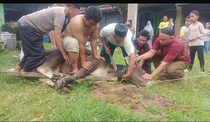 MEDAN(Portibi DNP): Keluarga besar almarhum Bapak Manahan Lubis dan Portibi Online melakukan pemotongan hewan qurban bersama masyarakat Tanjung Bunga Kelurahan Sidorejo II Kecamatan Medan Kota Sabtu (7/6/2025).