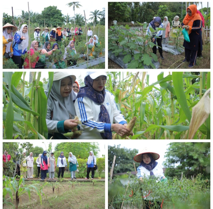 Asahan (Portibi DNP): Ketua TP. PKK Kabupaten Asahan, Ny. Yusnila Indriati Taufik melakukan panen raya di 2 lokasi Taman Hatinya PKK. Rabu, (30/04/2025).