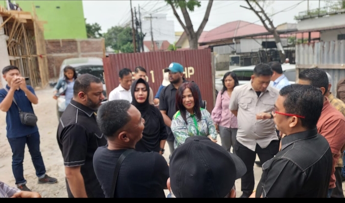 MEDAN (Portibi DNP) : Komisi IV Dewan Perwakilan Rakyat Daerah (DPRD) Medan melakukan peninjauan bangunan 2 unit 2 lantai tanpa izin Persetujuan Bangunan Gedung (PBG) di Jalan Perjuangan, Kelurahan Tanjung Rejo, Kecamatan Medan Sunggal, Selasa (3/6/2025).