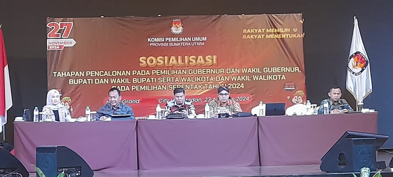 MEDAN (Portibi DNP) : Komisi Pemilihan Umum (KPU) Provinsi Sumatera Utara (Sumut) menggelar sosialisasi tahapan pencalonan pemilihan Gubernur dan Wakil Gubernur, Bupati dan Wakil Bupati, Wali Kota dan Wakil Wali Kota pada pemilihan serentak tahun 2024.