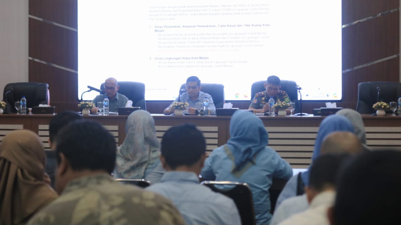 MEDAN (Portibi DNP) : Jelang Hari Raya Idul Adha 1445 H, Pemerintah Kota (Pemko) Medan menggelar rapat persiapan pelaksanaan Idul Adha dan penyembelihan hewan kurban. S