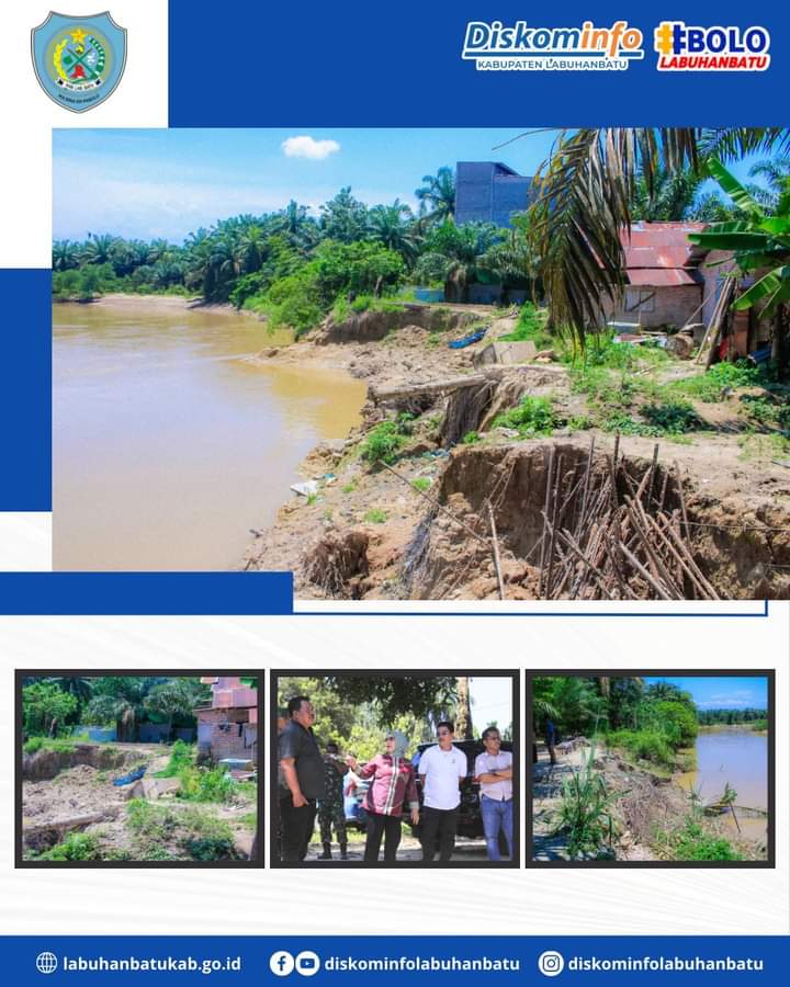 Kedatangan Plt Bupati Labuhanbatu Hj. Ellya Rosa Siregar, S.Pd, MM bersama rombongan atas laporan warga Tanjung Harapan yang rumahnya terdampak longsor akibat erosi dari air sungai bilah.
