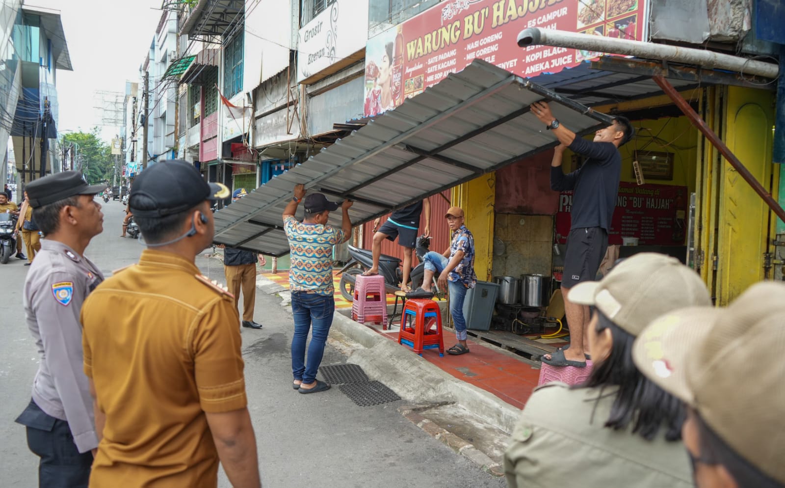 Penertiban yang melibatkan personil Satpol PP Kota Medan, Dishub Kota Medan, aparatur dari Kecamatan Medan Petisah dan dibantu aparat TNI dan Polri itu dipimpin langsung oleh Camat Medan Petisah Arafat Syam, Senin (4/11/2024).