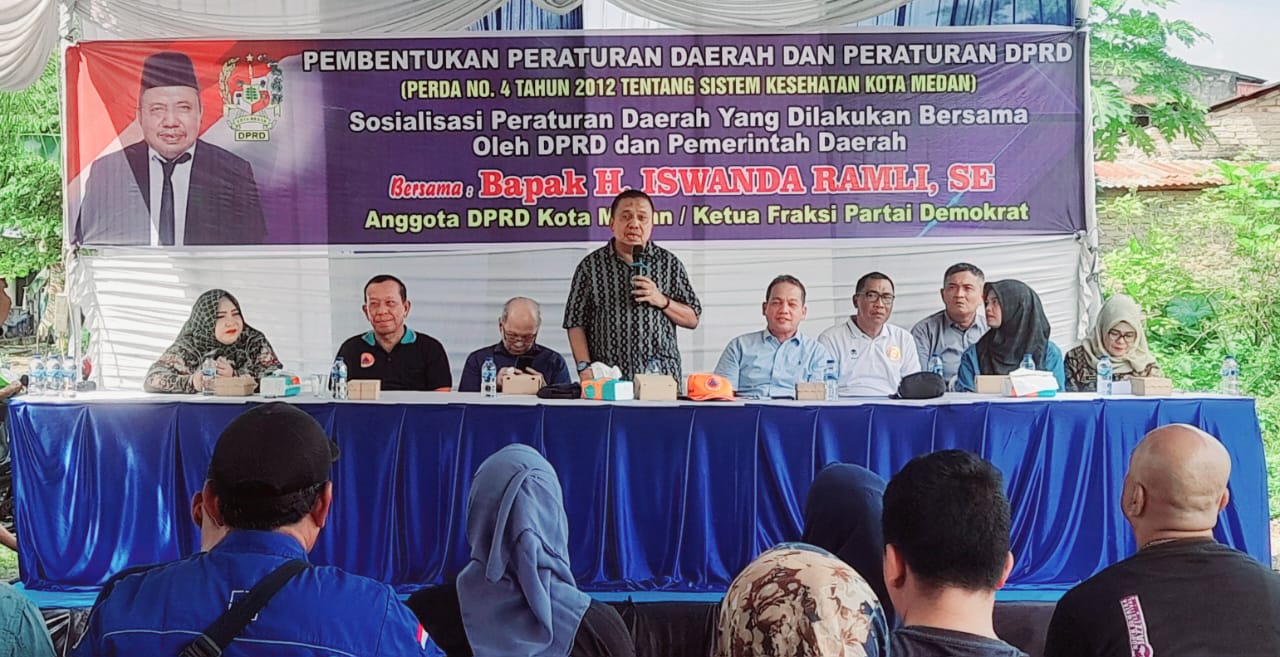 MEDAN (Portibi DNP) : Anggota Dewan Perwakilan Rakyat Daerah (DPRD) Medan H.Iswanda Ramli SE menggelar Sosialisasi Pembentukan Peraturan Daerah dan Peraturan DPRD, Perda No 4 tahun 2012 Tentang Sistem Kesehatan Kota di Jalan Starban Gang Famili Kelurahan Polonia Kecamatan Medan Polonia, Minggu (15/12/2024).