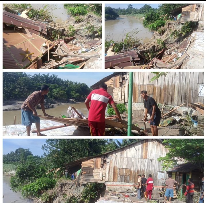 Asahan (Portibi DNP): Tiga rumah warga yang berada di Pinggiran Sungai yang berada di Jl. Benteng Lk. IX terkena longsor.