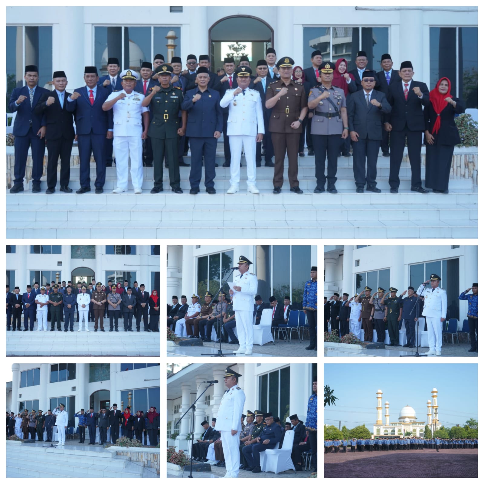 Terlihat apel berlangsung dengan tertib dan khidmat yang diikuti oleh jajaran Forkopimda, ASN, dan peserta apel lainnya.