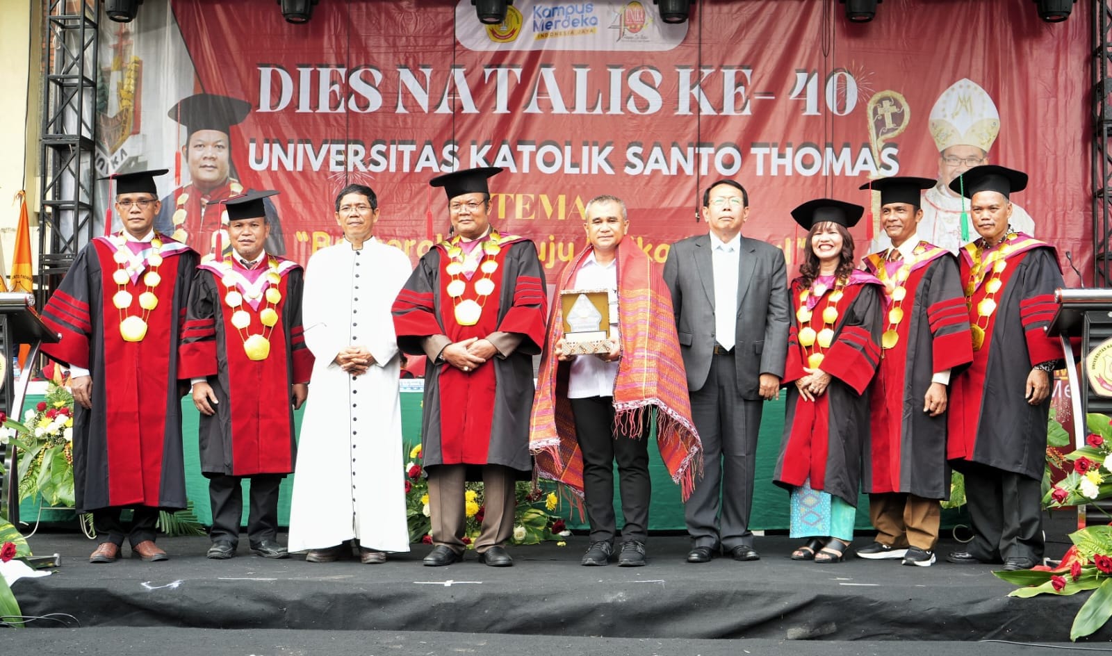 “Karena itu saya berpesan kepada para mahasiswa dan alumni agar memiliki rasa bangga menjadi bagian dari Universitas Katolik Santo Thomas ini,”pesan M. Sofyan.