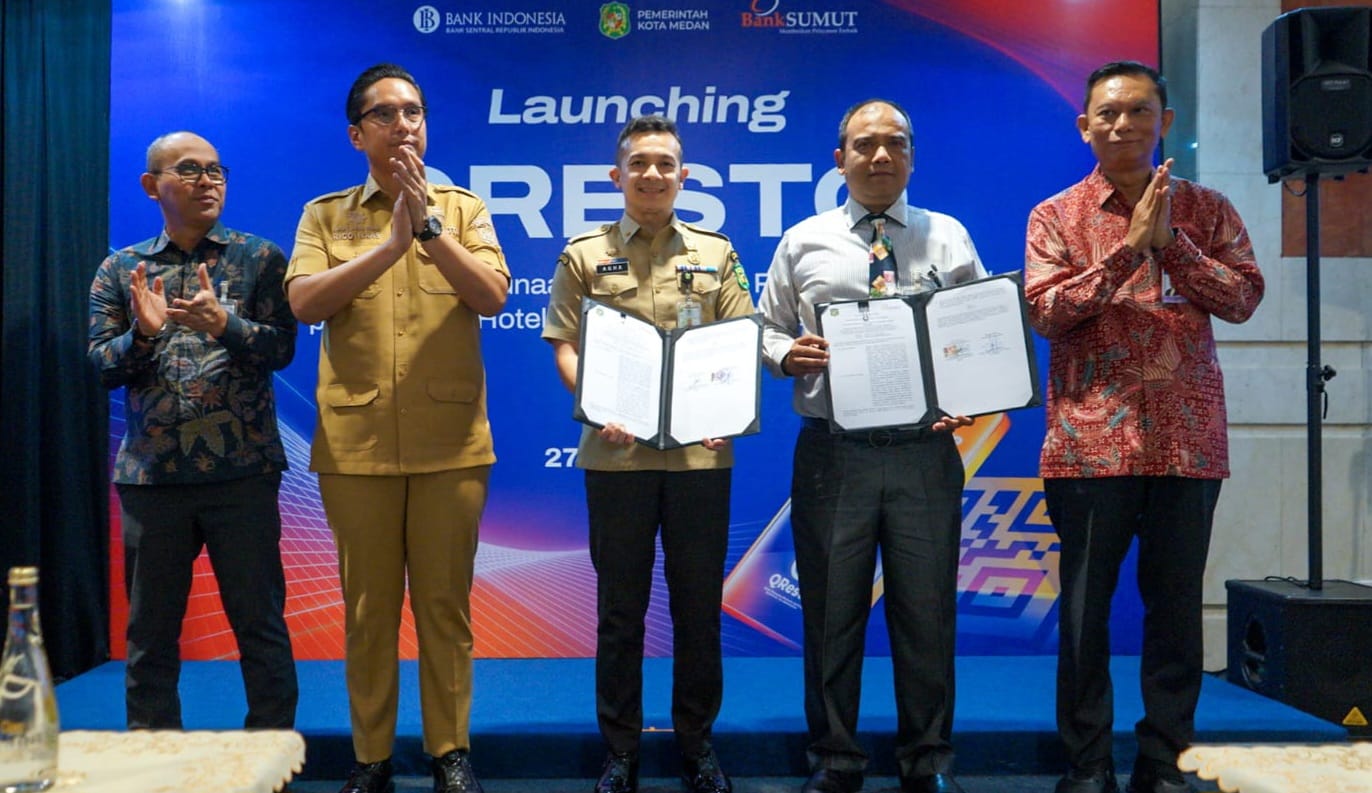 Acara peluncuran yang berlangsung khidmat ini ditandai dengan pertukaran dokumen strategis antara Pemko Medan dengan pihak perbankan, serta simulasi langsung penggunaan Qresto oleh Rico Waas saat membayar pesanan di restoran Sushi Tei sebagai pilot project.